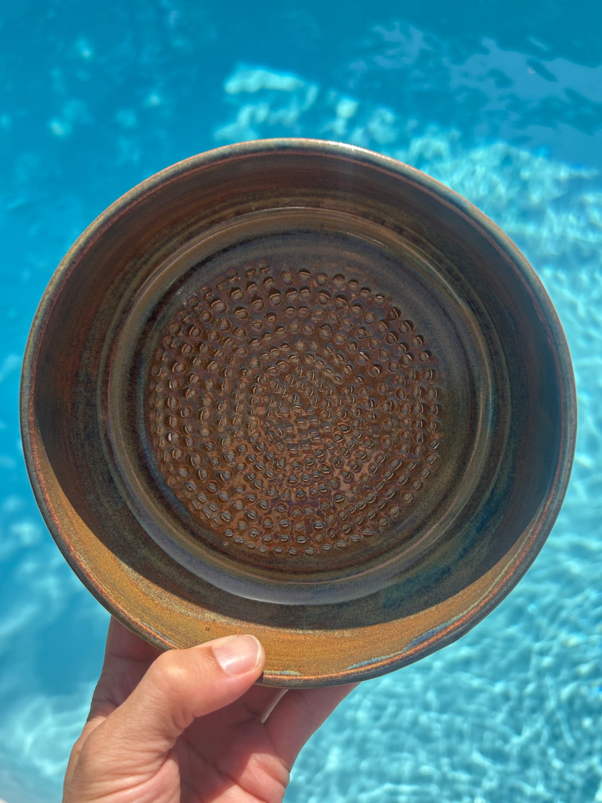 Bol grattoir à fruits, légumes, ail … pour vos salades sucrées ou salées , pour réduire en purée les fruits pour vos yaourts , pour des marinades ….